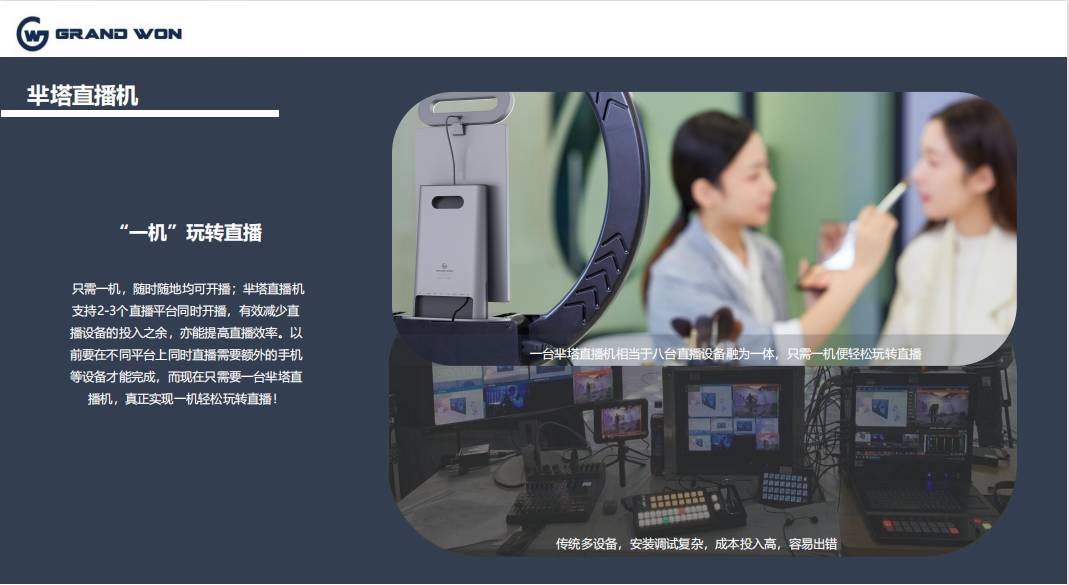 基于市场需求,广闻实业推出一款新的产品,芈塔直播机。